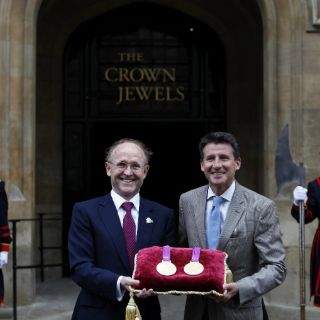 Coe, junto a Jan du Plessis, presidente de Rio Tinto , que suministra el metal para las medallas, se dirigió a las bóvedas de la imponente Torre de las Joyas en la fortaleza medieval a orillas de río Támesis.