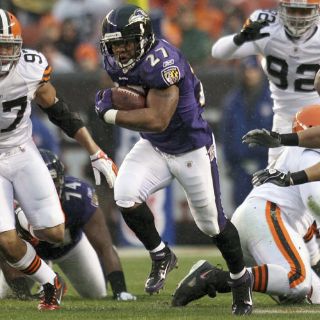 CLEVELAND, OHIO (04/DIC/2011).- Ray Rice corrió el domingo para 204 yardas por primera vez en su trayectoria, incluyendo un acarreo de 67 yardas en el tercer cuarto, y los Cuervos de Baltimore vencieron 24-10 a los Cafés de Cleveland.