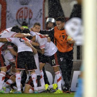 El centrodelantero Lucas Alario conectó de cabeza arrojándose en palomita a los 45 minutos. El uruguayo Carlos Sánchez anotó el segundo de tiro penal a los 75. Ramiro Funes Mori conectó de cabeza el tercero a los 79.