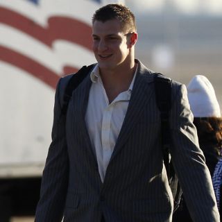 INDIANÁPOLIS, INDIANA (31/ENE/2012).- Rob Gronkowski, ala cerrada de Patriotas de Nueva Inglaterra de la NFL, se perdió las prácticas aye con su conjunto, debido a la lesión que tiene en el tobillo izquierdo.