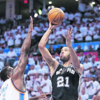 Russell Westbrook aportó 34 puntos, ocho asistencias, siete rebotes y seis robos y Kevin Durant agregó 31 unidades y 14 rebotes para el Thunder de Oklahoma, que se recuperó de un déficit de 12 puntos en el último cuarto para forzar el tiempo extra, pero no pudieron hacerle frente a los Spurs de San Antonio en la prórroga.