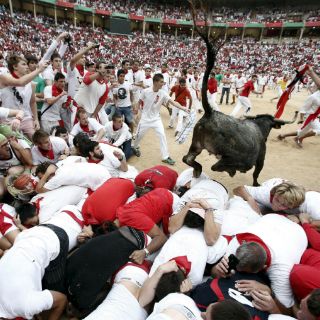 Según el parte médico, varios "mozos" recibieron atención por contusiones, después de caídas y pisotones, pero solo cuatro requirieron ser trasladados al Hospital de Navarra.