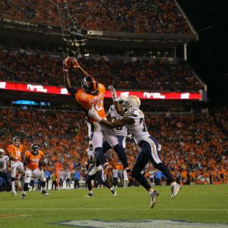 Mientras la golpeada secundaria de los Cargadores cubría intensamente al sensacional receptor Demaryius Thomas, Sanders atrapó pases de touchdown de dos, tres y 31 yardas. El último siguió a una intercepción que hizo Chris Harris Jr. a un nervioso Philip Rivers.