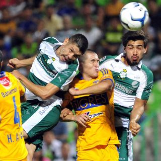 TORREÓN, COAHUILA (16/AGO/2013).- Después de ser la figura con la selección a mitad de semana, el delantero Oribe Peralta volvió a brillar ahora con el conjunto de Santos Laguna al anotar dos goles y poner otra asistencia para el 3-0 con el que ganaron a los Tigres de la UANL en el Estadio TSM.