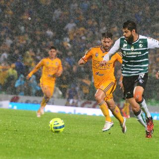 TORREÓN, COAHUILA (21/MAR/2015).- Santos Laguna fue incapaz de mantener una cómoda ventaja frente a unos Tigres de la UANL que habían sido mejores y que vinieron de atrás para rescatar el empate 2-2, en partido de la fecha 11 del Torneo Clausura 2015 de la Liga MX.