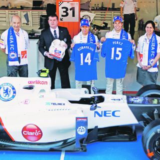 GUADALAJARA, JALISCO (11/MAY/2012).- La escudería Sauber de Fórmula Uno presentó de manera oficial el logotipo que sitúa al equipo de futbol inglés, Chelsea, como su nuevo patrocinador en el chasis del C31, monoplaza con el que compiten el piloto tapatío Sergio Pérez y el japonés Kamui Kobayashi.