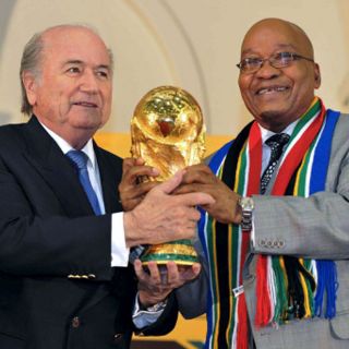 "En nombre de nuestro Gobierno y del pueblo de Sudáfrica es para mí un honor dar la bienvenida a equipos, aficionados, turistas y a toda la fraternidad del futbol a nuestro bello país", dijo Zuma en una ceremonia en la que dio el trofeo del Mundial a Blatter.