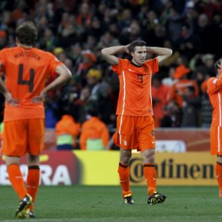 JOHANNESBURGO, SUDÁFRICA (11/JUL/2010).- Holanda, finalista de los Mundiales de 1974 y 1978, volvió a sufrir una nueva frustración en final de Copa del Mundo, acrecentando su larga historia de fracasos en grandes citas, tras su derrota en el choque decisivo de Sudáfrica 2010 ante España (1-0 en alargue), el domingo.