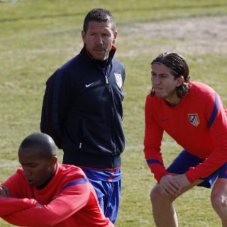 MADRID, ESPAÑA (25/FEB/2012).- El director técnico del Atlético de Madrid, el argentino Diego Simeone, exhortó a sus jugadores a dar más del cien por ciento para vencer este domingo al Barcelona en la cancha del estadio Vicente Calderón.