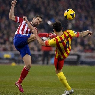Los cinco minutos iniciales tuvieron dos arribos destacados por parte "colchonera" en maniobra por la derecha del creativo Arda Turan, con balón llovido sobre el arco de Víctor Valdés tras rebote en Sergio Busquets, y un control y volea de Costa bien blocada por el arquero azulgrana.