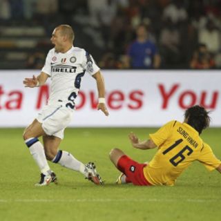 ABU DHABI, EMIRATOS ÁRABES UNIDOS (16/DIC/2010).- El holandés Wesley Sneijder, centrocampista del Inter de Milán, es duda para la final del Mundial de Clubes, que disputará el sábado ante el Mazembe congoleño, tras sufrir un estiramiento en el primer minuto de la semifinal contra el Seongnam surcoreano.