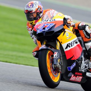 VALENCIA, ESPAÑA (04/NOV/2011).- El australiano Casey Stoner (Honda RC 212 V) fue el encargado de marcar el ritmo a todos sus rivales en los primeros entrenamientos libres del Gran Premio de la Comunidad Valenciana que se disputa en el circuito "Ricardo Tormo", si bien lo hizo en el último momento dadas las complicadas condiciones en que se desarrollaron.
