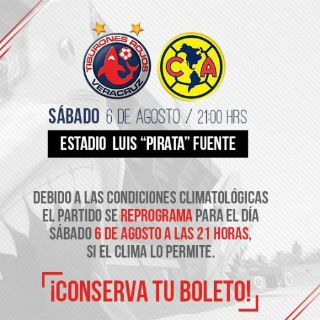 “El @ClubTiburones - @ClubAmerica será reprogramado bajo las recomendaciones de Protección Civil las inclemencias del tiempo no permiten las óptimas condiciones para llevar a cabo el encuentro”, señaló la Liga en su cuenta de Twitter.