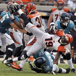 Cincinnati jugó sin los cornerbacks titulares Nate Clemens y Leon Hall, así como sin sus reservas Jason Allen y Dre Kirkpatrick. Los Jaguares (1-3) no aprovecharon esa situación.