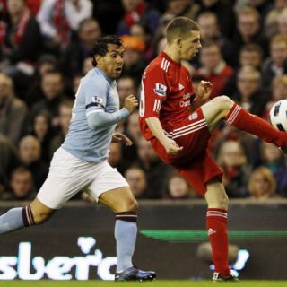 LONDRES, INGLATERRA (11/ABR/2011).- Carlos Tévez, el capitán del Manchester City, tuvo que abandonar hoy el campo de Anfield a causa de un tirón en la parte trasera del cuadríceps sufrido a los quince minutos de comenzar el encuentro que disputaba su equipo ante el Liverpool.