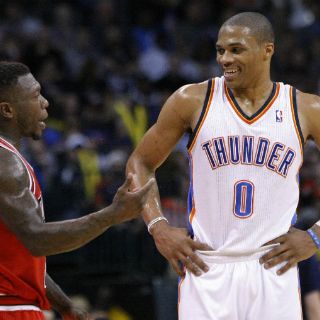 OKLAHOMA, ESTADOS UNIDOS (25/FEB/2013).- El base Russell Westbrook anotó 23 puntos y se encargó de dirigir el ataque balanceado de los Thunder que ganaron por paliza de 102-72 a los Bulls de Chicago.