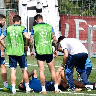Real Madrid en la ciudad deportiva de Valdebebas, a tres días de la final de la Liga de Campeones, midiendo esfuerzos pero sin mostrarse mermado por el fuerte golpe que le impidió terminar la sesión del martes y que no le impedirá jugar en Milán.