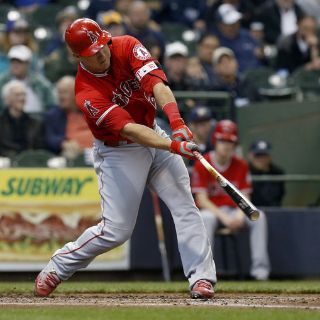 MILWAUKEE, WISCONSIN (04/MAY/2016).- El jardinero central Mike Trout aportó el bate oportuno y productivo que permitió a los Angelinos de Los Ángeles venir de atrás y conseguir la victoria por 7-3 ante los Cerveceros de Milwaukee, en partido de interligas.
