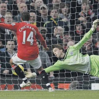 El ''Chicharito'' sigue en plan goleador en la Premier, pero esta vez su anotación no alcanza para que el United sume de a tres