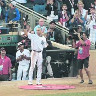 En Minneapolis, Jeter se sintió como estuviera en el Bronx. Una grabación de la voz de Bob Sheppard, el extinto locutor de los juegos de los Yanquis, presentó al “Número 2” en sus turnos y el tema New York, New York de Frank Sinatra sonó cuando Jeter recibía en la cueva el saludo de sus compañeros de equipo de la Liga Americana.