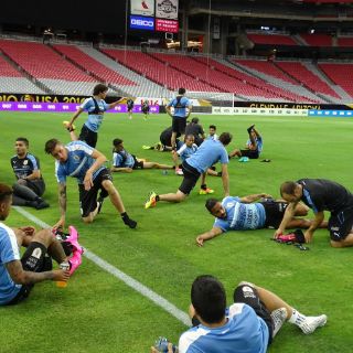 Con Luis Suárez entrenando aparte, el resto del equipo estuvo haciendo ejercicios físicos antes de entrenar con pelota mientras los guardametas estuvieron practicando tiros al arco. La prensa pudo presenciar las evoluciones de los internacionales durante 15 minutos.