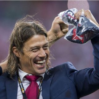 GUADALAJARA, JALISCO (19/ABR/2017).- Con la garganta y los nervios hechos trizas por una noche de futbol ríspido y por momentos exasperante, Matías Almeyda dedicó el campeonato de Copa obtenido esta noche ante Morelia a los seguidores del Rebaño, los Chiva hermanos.