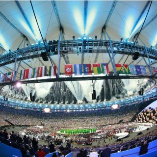 Mientras en la pista se escenificaba un enorme símbolo de la paz en verde y con un árbol dentro, una batucada con fuegos de artificio ensordeció a un Maracaná todavía a la expectativa, hasta que sonó su voz.