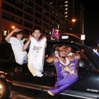 Tomas de televisión mostraron a varias personas que golpeaban un taxi cuando intentaba abandonar la zona cercana al estadio después que los Lakers ganaran a los Celtics de Boston 83-79. Algunos abrieron la portezuela trasera del vehículo, mientras otros lo mecieron con intención de volcarlo. A la postre el taxi pudo escapar de la turba.