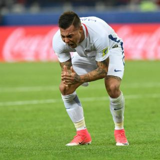 KAZÁN, RUSIA (19/JUN/2017).- Los jugadores chilenos simulaban una partida a un videojuego sentados en el césped para celebrar el gol de Eduardo Vargas cuando el árbitro Damir Skomina interrumpió la fiesta para que se revisara la acción en el video de asistencia. Lo anuló por fuera de juego y se desencadenó la tormenta.