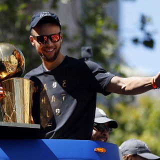 El paso de los campeones fue una locura contagiosa entre público y jugadores, encabezados por su capitán Stephen Curry y Kevin Durant, quien fue elegido el Jugador Más Valioso de las finales.