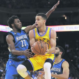 El alero reserva Shabazz Muhammad aportó 35 puntos, su mejor marca como profesional, y los Timberwolves de Minnesota vencieron el martes pasado117-124 en la prórroga a los Warriors.
