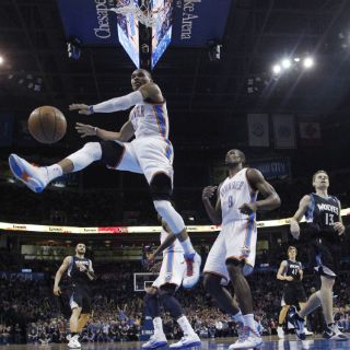 OKLAHOMA, ESTADOS UNIDOS (23/FEB/2013).- El base Russell Westbrook aportó 37 puntos para dirigir la victoria de los Thunder de Oklahoma City, que vencieron 127-111 a los Timberwolves de Minnesota.
