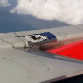 En las imágenes se observa la forma en la que la cinta se va despegando poco a poco durante el vuelo que perdió una tapa que cubre uno de los soportes del motor, lo que provocó alarma entre los pasajeros.