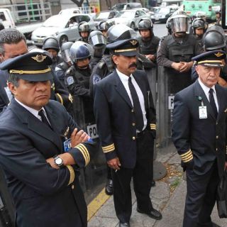 Elementos del cuerpo de Granaderos replegaron al grupo de pilotos y sobrecargos, quienes realizaban un bloqueo frente a las instalaciones de la dependencia