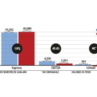 Asimismo, las empresas reportaron una pérdida neta consolidada de mil millones de pesos en el primer semestre de 2015, frente a la utilidad de 861 millones de la primera mitad del 2014.