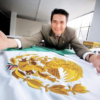 CIUDAD DE MÉXICO (15/SEP/2010).- Cuando Jorge Mario Canuero, director general de Heráldica Creativa, inició en el negocio de la manufactura de la Bandera Nacional, le emocionó conocer los colores del escudo, cada elemento que lo conforma, el número de nopales, la forma del águila, las secciones del plumaje, el pico, las patas, los laureles y todo el simbolismo que conlleva el Lábaro.