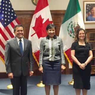 Ildefonso Guajardo Villarreal; de Comercio de Estados Unidos, Penny Pritzker; y la ministra de Comercio Internacional de Canadá, Chrystia Freeland, se reunieron este lunes para dar seguimiento a las acciones conjuntas que se llevan a cabo para incrementar la competitividad y prosperidad de la región de América del Norte.