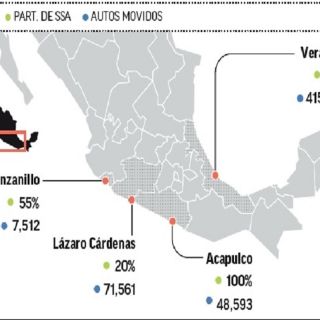 SSA México moviliza el 100% de los vehículos en el puerto de Acapulco; el 20% de los que se mueven en Lázaro Cárdenas; y el 55% de los que se transportan desde y hacia Manzanillo y Veracruz, siendo ésta última la terminal más importante en este rubro.