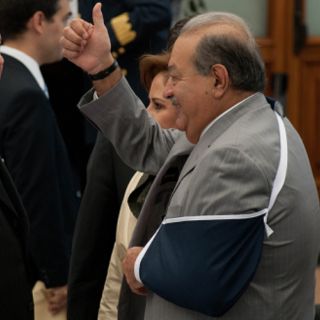 CIUDAD DE MÉXICO (31/MAY/2011).- Durante la recepción en México de la presidenta de Argentina, Cristina Fernández de Kirchner, el empresario mexicano, Carlos Slim, lució un cabestrillo en su brazo izquierdo, sin que se especificara la razón.