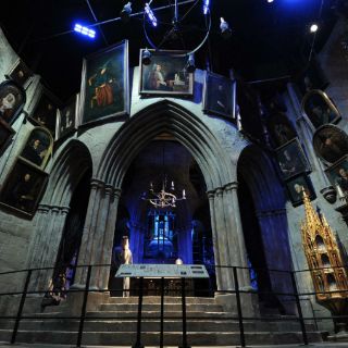 El primer set el más espectacular que encuentran los visitantes es el Gran Salón de la escuela de Hogwarts, con sus pisos de piedra, arcos góticos, gárgolas y enorme chimenea. Luego está el dormitorio donde dormía el joven mago, la oficina del director Albus Dumbledore, la cabaña del gigante Hagrid y Diagon Alley, la mágica calle que alberga la tienda de varitas Ollivander y el negocio Wizard Wheezes de los Weasley.