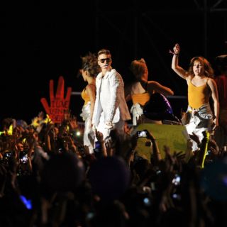 El juvenil cantante canadiense comenzó su presentación con una hora de retraso, algo que pareció no importar demasiado a sus seguidoras, muchas de las cuales acamparon durante dos días en las afueras del estadio para asegurar su ingreso.