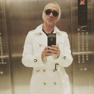 Fue en su cuenta de Instagram que el intérprete subió una imagen donde se le observa usando un saco con botones al frente, y un gorro, ambos en color blanco; mientras posa en un elevador y mirando a un espejo. La ''selfie'' además muestra su rostro con unas gafas negras.
