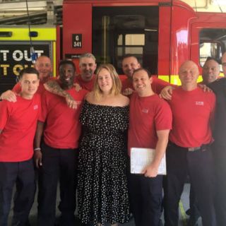 Adele visita a los bomberos tras incendio en Londres
