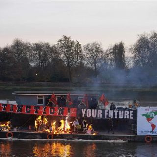 Corre dijo a las personas que veían su protesta en el río Támesis que "el punk nunca ha sido y tampoco buscó ser nostálgico".
