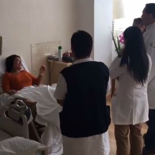 En el material se aprecia a la intérprete sobre un sillón, con las piernas en alto y rodeada por personal médico.