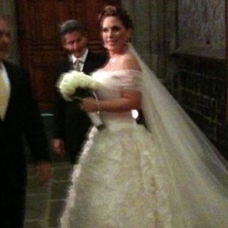 Vale eligió un vestido de novia diseñado por David Salomón, y joyas de Elena Jiménez, quien creó el anillo de compromiso así como las argollas de matrimonio que la pareja se entregará esta noche.