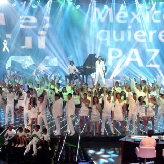 CIUDAD DE MÉXICO (28/AGO/2011).- En apoyo a los regiomontanos, este domingo los participantes, maestros y el resto del staff de La Academia presentaron como intro un popurrí en homenaje a las víctimas del atentado al Casino Royal y en petición de la paz.