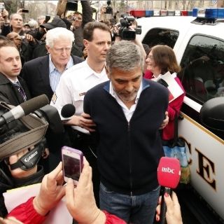 Clooney fue esposado por la policía en una manifestación que fue ampliamente seguida por los medios de comunicación, que grabaron cómo el actor se acercó tranquilo hacia los agentes y con una media sonrisa recibió los grilletes.