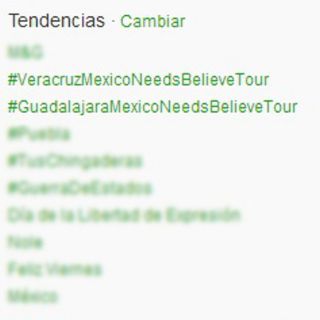 Así fue como los hashtags #CancunMexicoNeedsBelieveTour, #GuadalajaraMexicoNeedsBelieveTour, #MonterreyMexicoNeedsBelieveTour y #VeracruzMexicoNeedsBeleiveTour se colocaron en los primeros lugares de tendencias en Twitter en México.