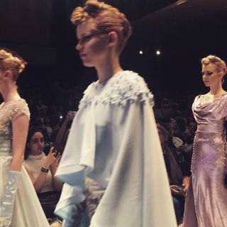 La colección es Otoño-Invierno 2016-2017 presentó una paleta de colores de rosas y azules en tonos pastel, así como grises y negros, algunos outfits lucieron radiantes con abrigos estilizados y evocadores que Benito pondrá próximamente a la venta.